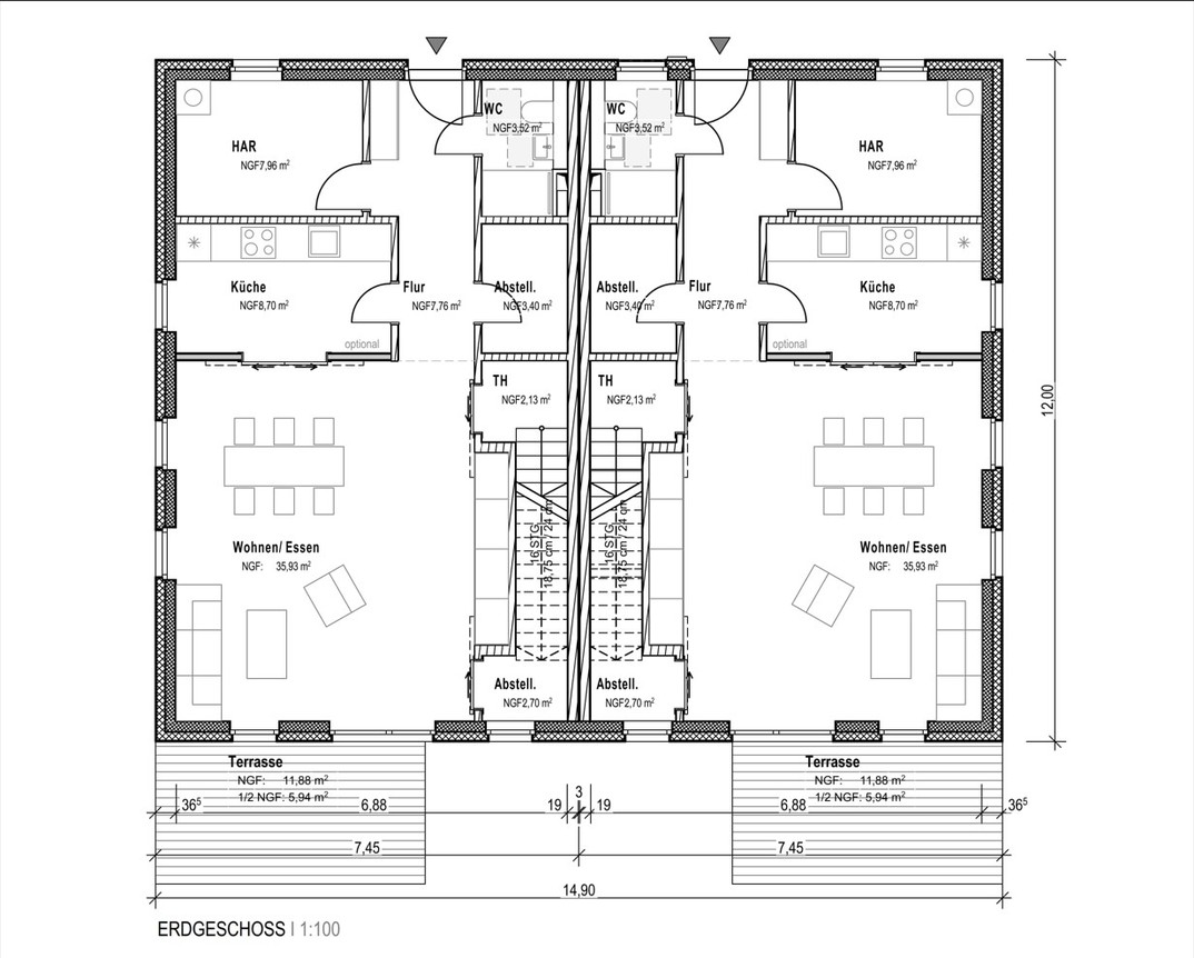 Die angebotenen vier Stadthäuser werden in KFW 55ee-Standard in hochwertiger Bauqualität von der renommierten Baufirma KAGEBAU errichtet. Satteldächer und eine attraktive Klinkerfassadengestaltung mit zahlreichen Fenstern bilden ein hochwertiges Wohnensemble. Der Stadtvilla-Stil sorgt in Kombinationen mit vielen bodentiefen Elementen für ein wohnliches Gefühl in beiden Geschossen. Das Leben ohne Schrägen zeigt keine Grenzen bei der persönlichen Entfaltung in ihren eigenen vier Wänden auf. Der offene Wohn-/Essbereich bietet ein Mittelpunkt zum Zusammenkommen der Familie. Ein weiteres Zimmer im Erdgeschoss bietet zusätzlichen Raum zur freien Nutzung. Modernste Bautechnik mit Wärmeverbundsystem und Wärmepumpen sind hier selbstverständlich. Ebenso Fußbodenheizung im gesamten Haus und Rollläden im Erdgeschoss und vieles mehr.